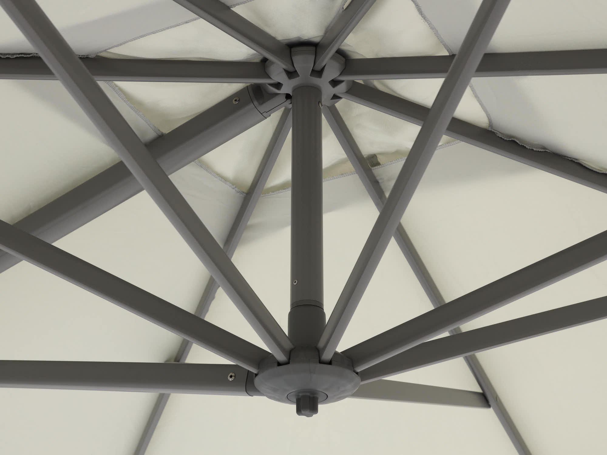 Detailfoto von einem hellen Sonnenschirmtuch