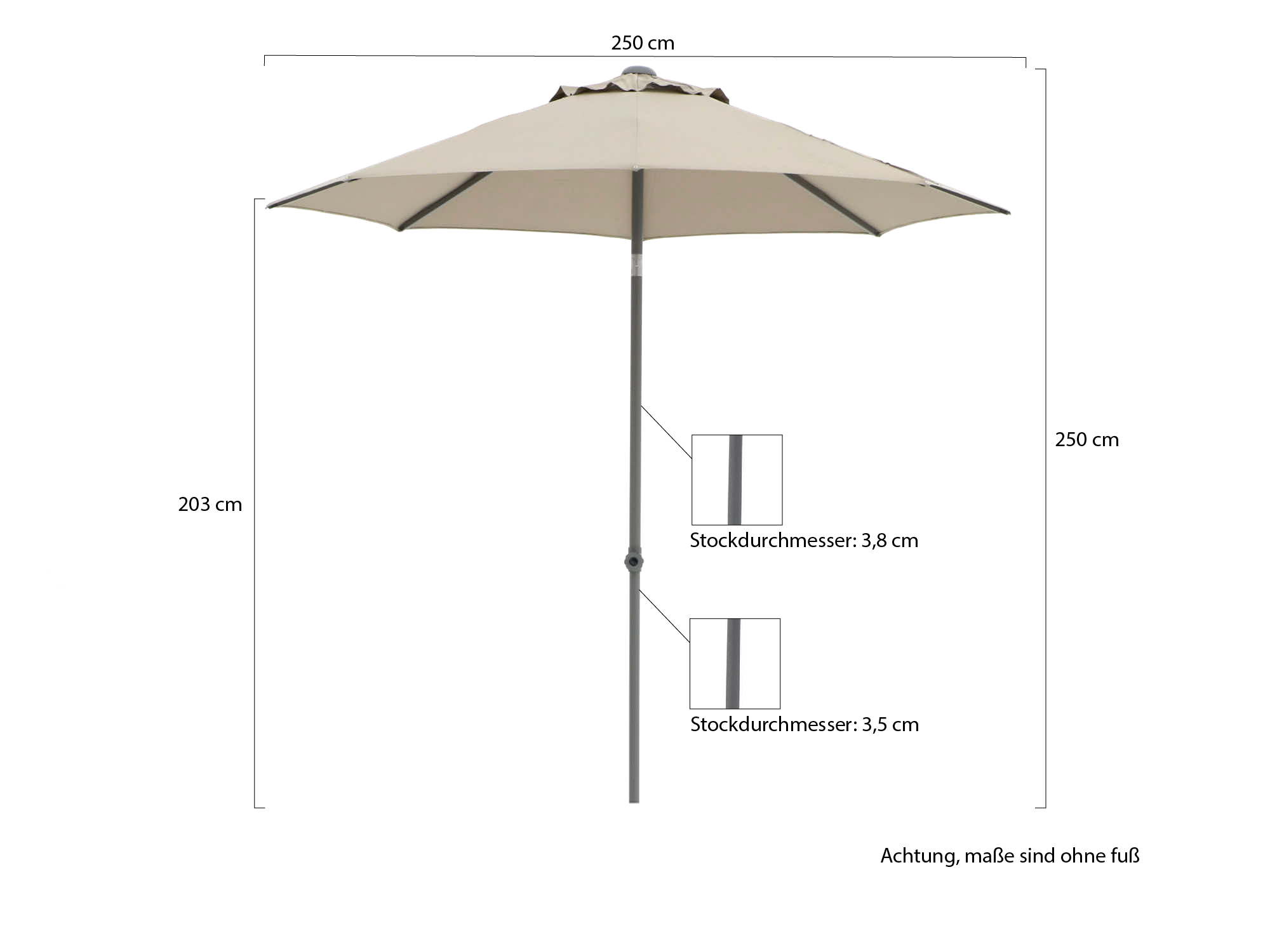 - Gewicht des Sonnenschirms (ohne Schirmständer) 6.8
