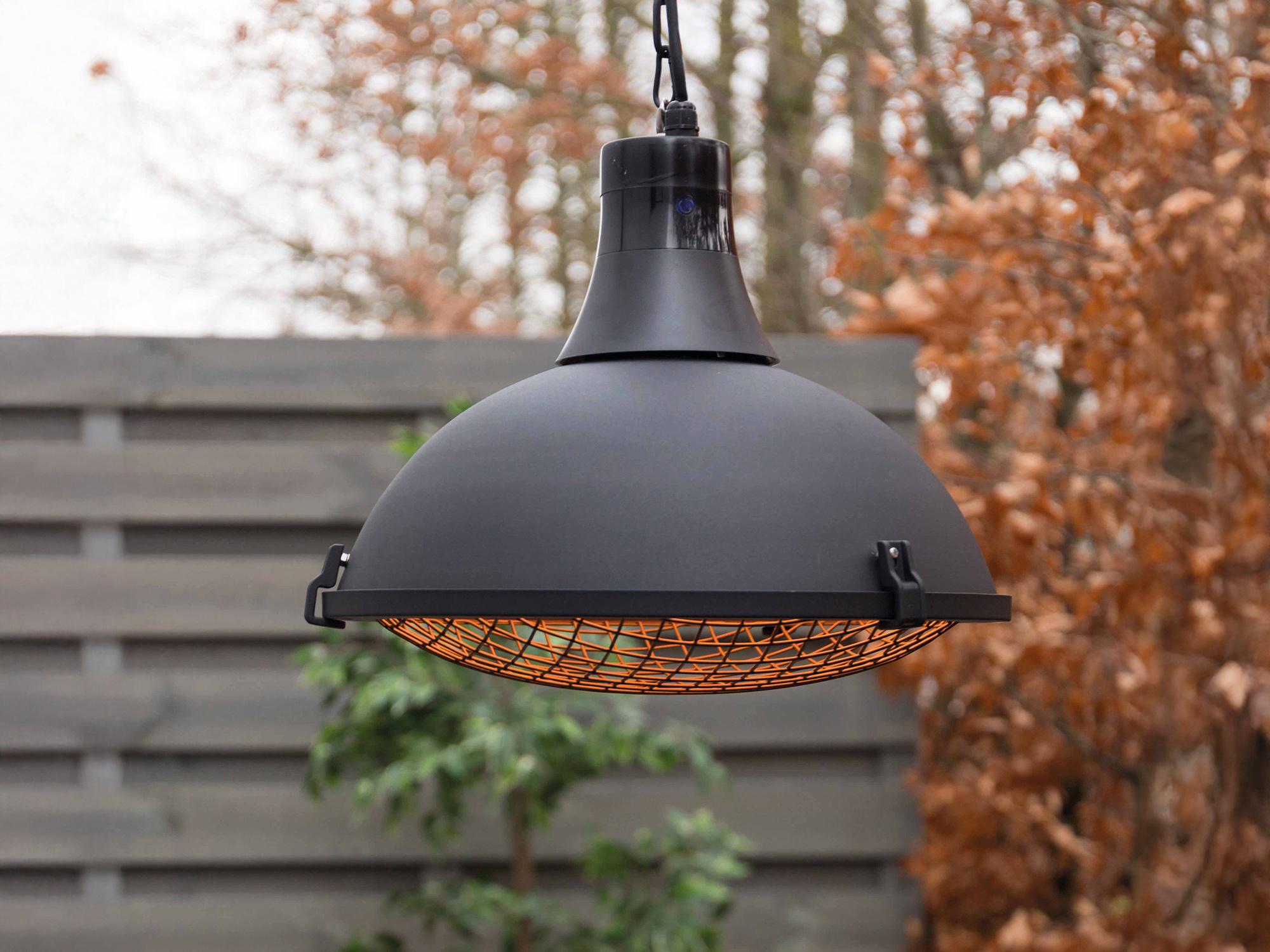 Der Sunred Bright Indus II Hängeheizstrahler in Schwarz überzeugt mit einem industriellen Look und kombiniert leistungsstarke Infrarotwärme mit integrierter LED-Beleuchtung. So erwärmen Sie direkt Ihren Sitzbereich und sorgen gleichzeitig für zusätzliche Atmosphäre auf Ihrer Terrasse oder Veranda.