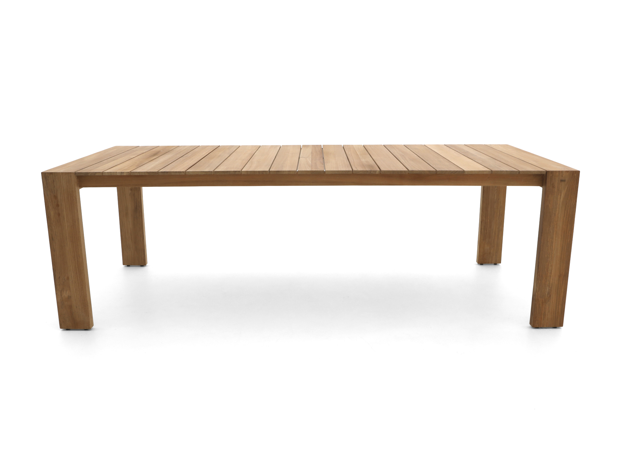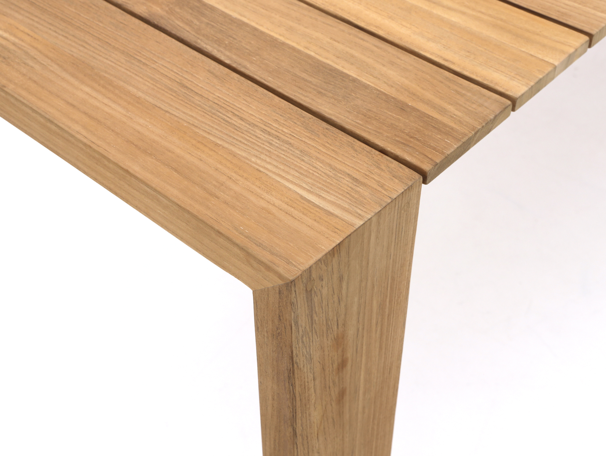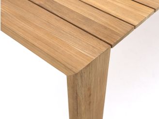Der SUNS Erice Gartentisch ist ein großer rechteckiger Esstisch aus Natural Teak, ideal, wenn Sie mit 6 Personen draußen essen oder gemütlich einen Drink genießen möchten. Mit seinem Maß von 240x100 cm haben Sie reichlich Platz für Teller, Schalen und Getränke, ohne dass der Tisch vollgestellt wirkt. Tischplatte und Gestell bestehen beide aus Teakholz in einer natürlichen Farbe. Dadurch wirkt der Tisch ruhig und lässt sich leicht mit verschiedenen Gartenstühlen kombinieren. Teakholz ist ein robustes Naturprodukt, das das ganze Jahr über draußen stehen kann – Sie müssen also nicht vor jedem Regenschauer alles wegräumen. Im Freien wird das Holz langsam vergrauen. Oder Sie erhalten die natürliche Farbe länger mit unserem eigenen Farbschutz – je nachdem, was Ihnen besser gefällt.