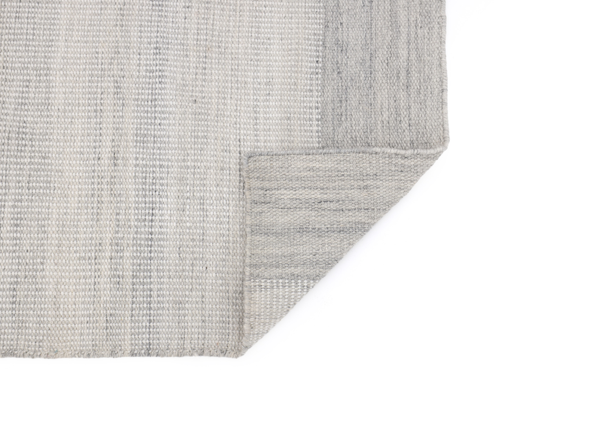 Detailfoto von der Unterseite eines hellgrauen Outdoor Teppichs