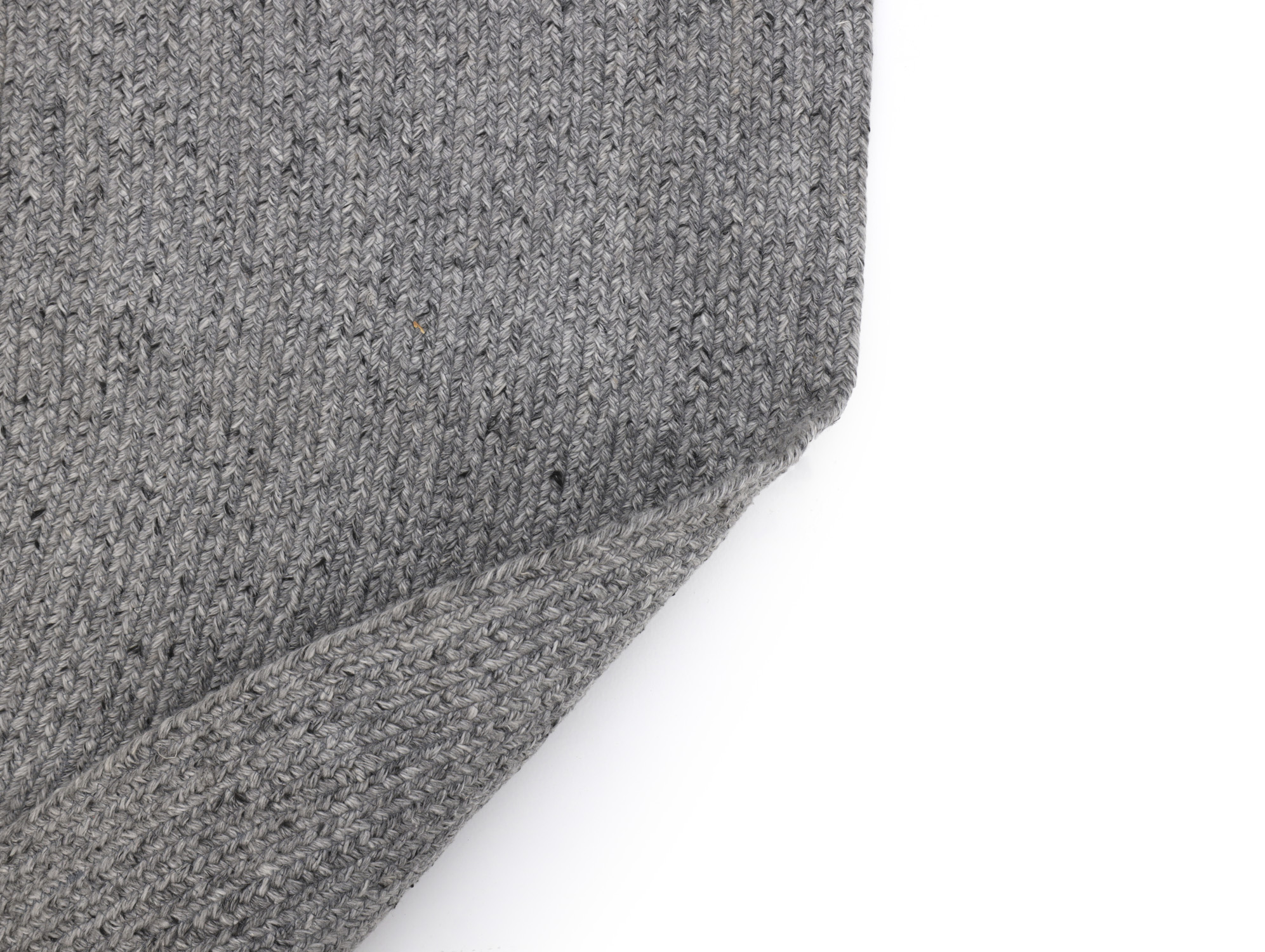 Detailfoto von der Unterseite eines hellgrauen Outdoor Teppichs