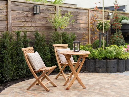 Robustes Teakholz: Hält jedem Wetter stand und sorgt viele Jahre lang für Freude. Das Holz ist sorgfältig getrocknet, wodurch die Gefahr von Rissen oder Verziehen deutlich reduziert ist.