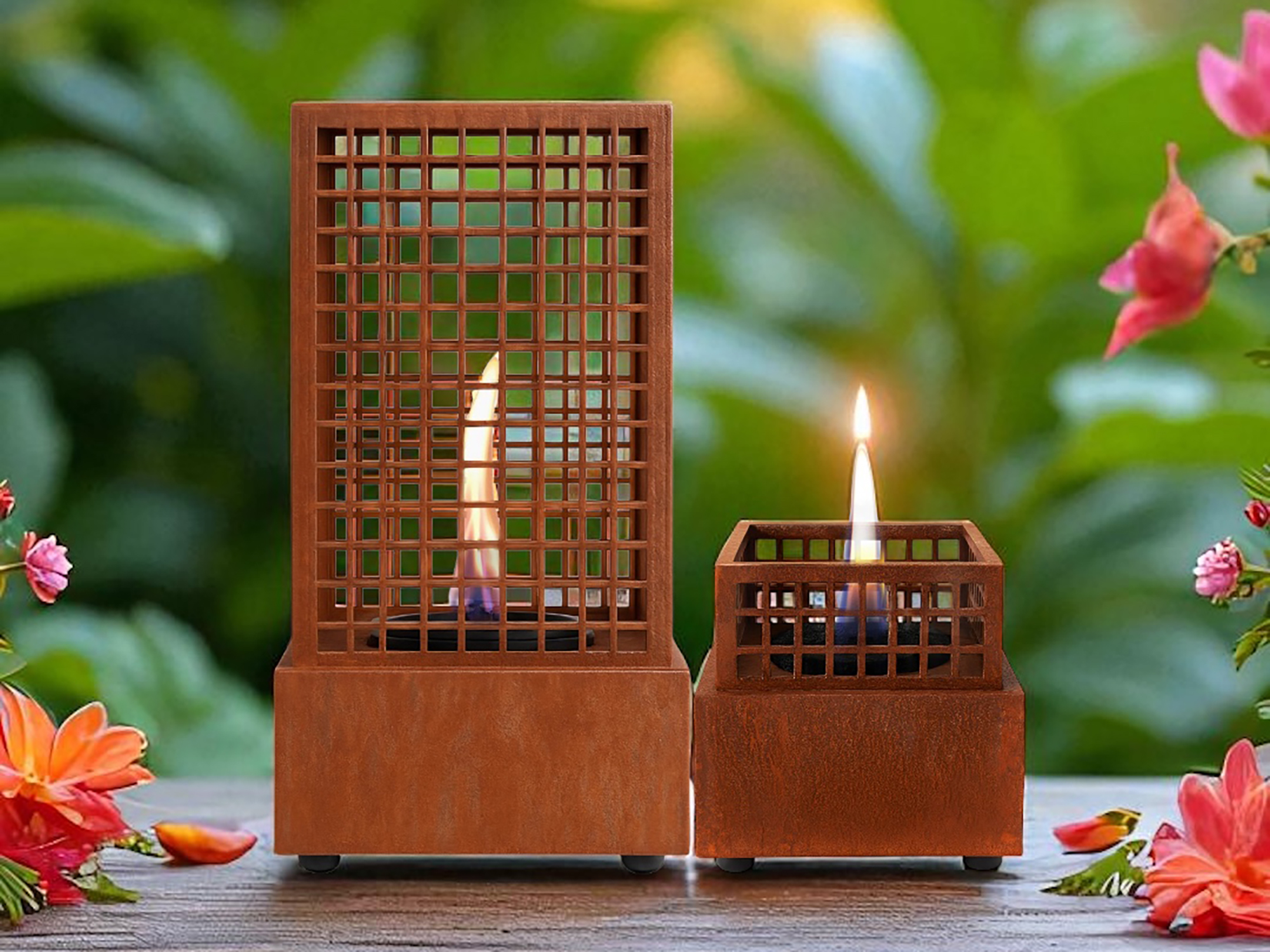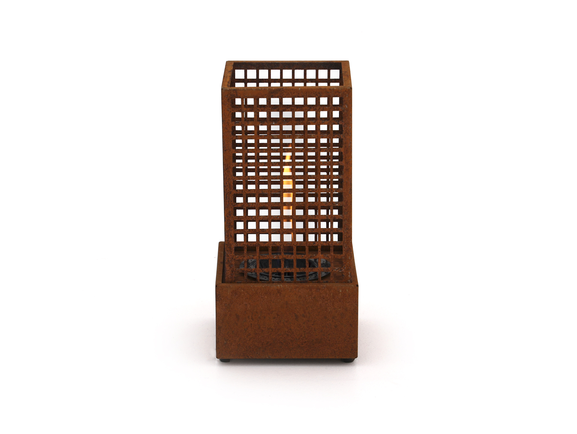 Durch sein kompaktes Format ist der Agni 18 besonders praktisch für kleine Balkone oder Patios. Trotz seiner Größe sorgt er für eine klare, warme Flamme mit echter Kaminatmosphäre. Bei Cortenstahl empfiehlt es sich, das Produkt vor der ersten Nutzung gründlich mit Wasser abzuspülen – idealerweise an einem Ort, an dem das ablaufende Wasser keine Flecken verursacht.