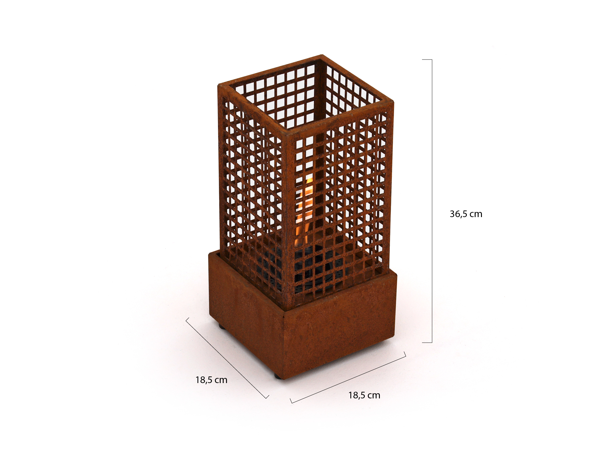 Der Tenderflame Agni 18 ist ein kleinerer Kamin, der sich ideal für Balkon, Patio oder kleine Sitzecken eignet. Mit Maßen von 18,5 x 18,5 cm und einer Höhe von 36,5 cm ist er kompakt, sorgt aber dennoch für echte Wärme. Der Kamin wird ausschließlich mit Tenderfuel betrieben, wodurch weder Rauch, Ruß noch Geruch entstehen.