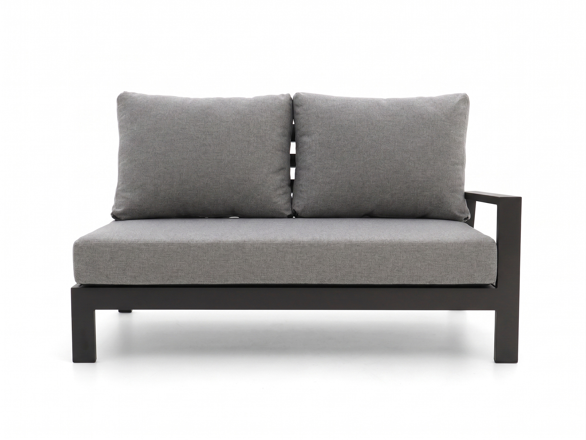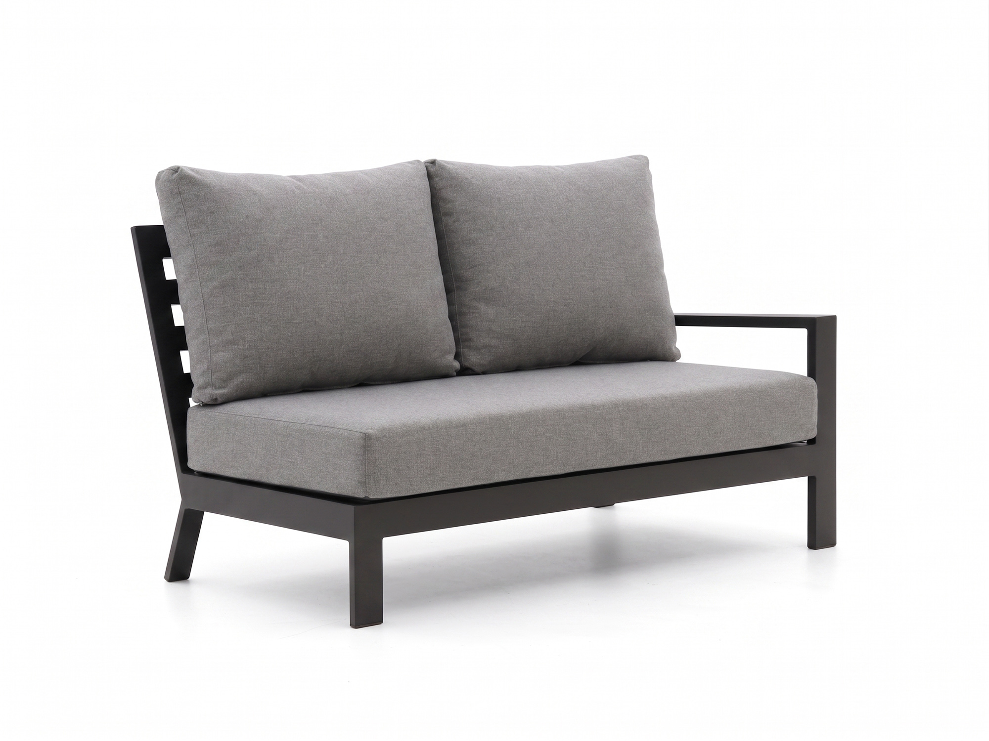 Das Tierra Outdoor Musone Loungeelement mit linkem Arm ist ein einzelnes Gartensofa für 2 Personen, ideal als Basis oder zur Erweiterung Ihres bestehenden Musone Lounge-Sets. Das Aluminium-Gestell ist leicht, sodass Sie dieses Element mühelos verschieben können, wenn Sie Ihre Terrasse neu einteilen oder kurz sauber machen möchten. Die grauen Kissen sind inklusive, Sie müssen also nicht separat nach passenden Kissen suchen und können sich sofort hinsetzen. Dieses Element mit linkem Arm platzieren Sie zum Beispiel auf der linken Seite Ihrer Eckaufstellung oder einfach als eigenständigen Zweisitzer an der Wand.